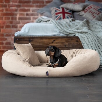 Tierlando ® Orthopädisches Hundebett Sammy VISCO | High-Tech-Velours | L - XXXXL beige 1,4 m, 30 cm, 1,05 m