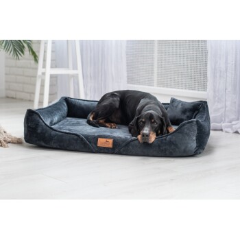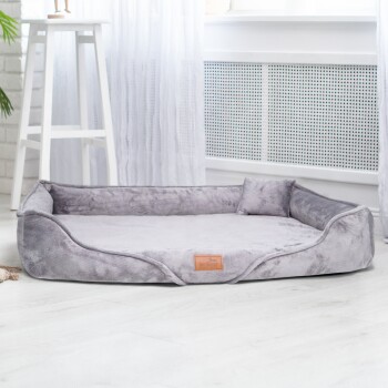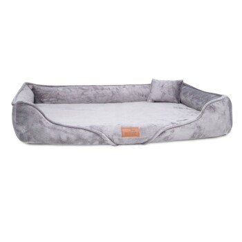 Tierlando ® Orthopädisches Hundebett TYSON | Kuschelig flauschiges XXL Hundesofa grau/ grau 1,3 m, 22 cm, 1 m