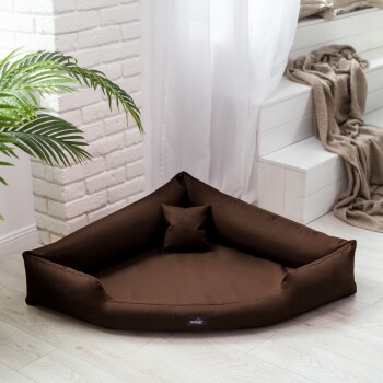 Tierlando ® TRIVIA | Orthopädisches Eckhundebett Polyester Hundebett Dreieckbett braun 1,2 m, 25 cm, 1,2 m