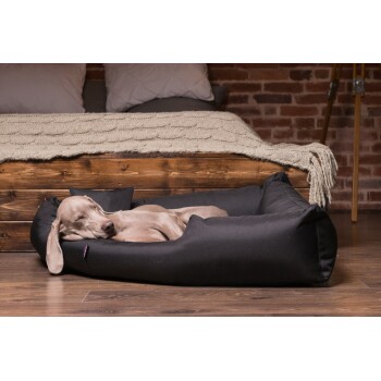 Bei der Entwicklung des orthopädischen Hundebettes TRIVIA VISCO wurden von tierlando zwei Ziele verfolgt: Eine platzsparende Lösung für winzige Räume, wie z. B. Single-Wohnungen, Boote, Wohnmobile, Büros oder Kinderzimmer. Ebenso eine gelenkschonende Qualität, die Ihnen und Ihrem Schatz ein Höchstmaß an Komfort und Alltagstauglichkeit gewährt. Durch die Formgebung geht nicht unnötig viel Bodenfläche verloren und trotz Platzmangel schaffen Sie für Ihren Hund ein kleines Reich, das Sie in jeder rechtwinkligen Ecke Ihrer Wohnung unterbringen. Ihr Hund hat seinen Ruheplatz und liegt Ihnen dennoch nicht im Weg. Die Hundematratze wird aus einer unteren Lage PUR-Schaum und einer mittleren Lage Formgedächtnisschaum VISCO (Memory Foam) hergestellt. Darüber befindet sich eine weiche Watte-Schicht. Der Bezug aus Polyester besitzt durch die Struktur eine prächtige Erscheinung. Dieses fest gewebte Polyester 600D ist zudem bekannt für seine Belastbarkeit. Der abgesenkte Eingang ermöglicht auch älteren Hunden einen einfachen Eintritt in das Hundebett. Die Serie besteht aus 4 Größen (M 80cm, L 100cm, XL 120cm und Übergroße XXL 150cm) und 5 klassischen Farben (braun, graphit, schwarz, bordeaux, creme).