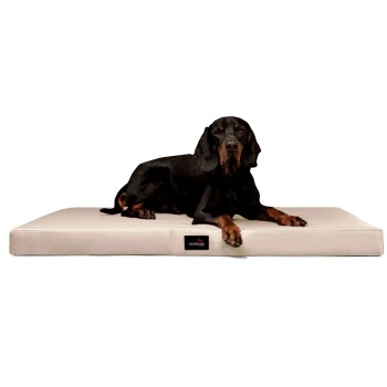 Die Hundematratze Alice ist 9 cm hoch und somit besonders für große und schwere Hunde geeignet, die aufgrund einer Erkrankung (z.B. Arthrose, HD, DE) eine orthopädischen Hundeschlafplatz benötigen. Die rechteckige Formgebung ist für Hunde perfekt, die gerne auf der Seite liegen und sich zum Schlafen auch gerne lang ausstrecken. Die Hundematratze wird aus einer unteren Lage PUR-Schaum und einer mittleren Lage Formgedächtnisschaum VISCO (Memory Foam) hergestellt. Darüber befindet sich eine weiche Watte-Schicht. Der Bezug aus Kunstleder ist besonders pflegeleicht und haar-resistent. Die Serie besteht aus 4 Größen (M 80cm, L 100cm, XL 120cm und Übergroße XXL 150cm) und vielen tollen Farben.