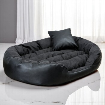 Tierlando Hundebett PHILIP VIP Kunstleder Velours 110 140 170cm XL XXL XXXL schwarz/ graphit 1,1 m, 25 cm, 80 cm