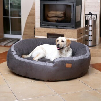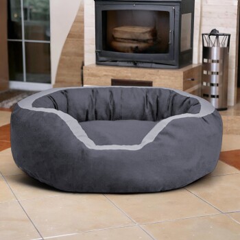 Tierlando LANA Hundebett Hundesofa M L XL Velours MEGA DICK SUPERWEICH schwarz/ graphit 80 cm, 25 cm, 70 cm