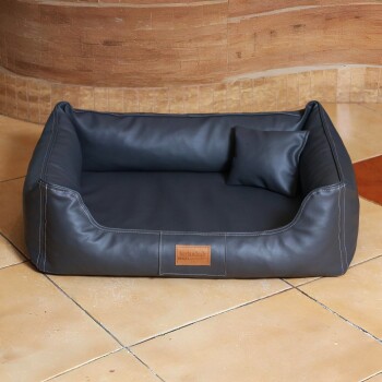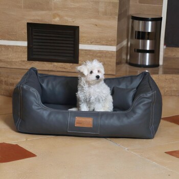 Tierlando MADDOX KOMFORT Hundebett Hundesofa Kunstleder S - XXL schwarz/ graphit 1 m, 25 cm, 75 cm