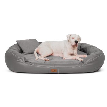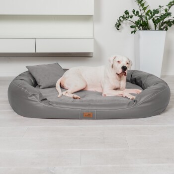 Tierlando Orthopädisches Hundebett LENNART VISCO PLUS Kunstleder und Velours grau/ grau 1,4 m, 30 cm, 1,05 m