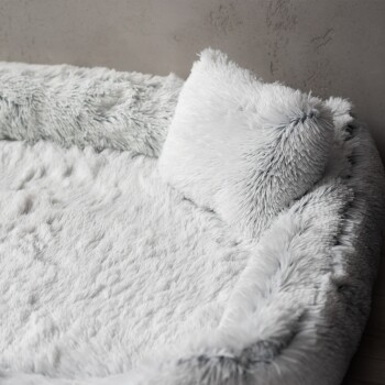 Dieses flauschige Hundebett hat dieselbe eckige Form, mit demselben gut gepolsterten Rand, das oft wie ein Kissen genutzt wird und sich nach vorne hin abflacht, damit ihr Hund bequem in das Bett einsteigen kann. Außerdem haben Sie auch hier die Möglichkeit die Matratze herauszunehmen, um sie platzsparend in den Urlaub mitnehmen zu können.