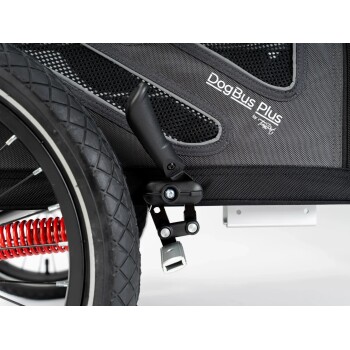 Die Deichsel lässt sich beim DogBus Plus werkzeuglos abnehmen und je nach Bedarf links oder rechts montieren. Dadurch passt sich der Fahrradanhänger optimal an dein Bike an und bietet maximale Flexibilität in der Nutzung.