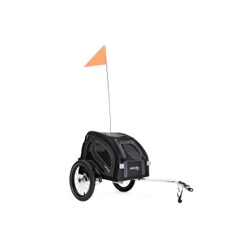 Hochwertiger Fahrradanhänger für kleine bis mittlere Hunde. Mit liegender Federung, Aluminiumboden und Feststellbremsen. Für bequeme und sichere Radtouren.