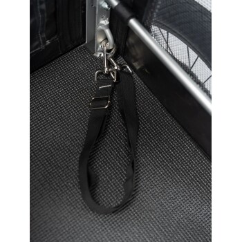 Im Innenraum befinden sich praktische Befestigungspunkte, an denen die mitgelieferte Sicherheitsleine angebracht werden kann. So bleibt dein Hund während der Fahrt zuverlässig im Hundeanhänger gesichert.