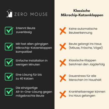 - Kompatibel mit gängigen Mikrochip-Katzenklappen: Keine neue Katzenklappe erforderlich