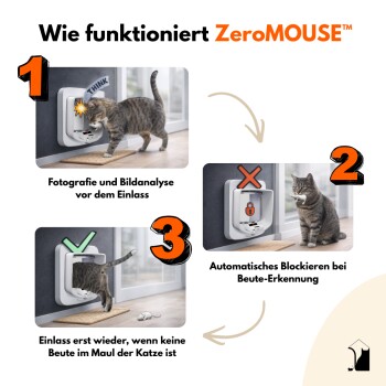 Trixie ZeroMOUSE 2.0: Intelligente Beute-Erkennung für Mikrochip-Katzenklappen – Verhindert Mäuse & Vögel im Haus