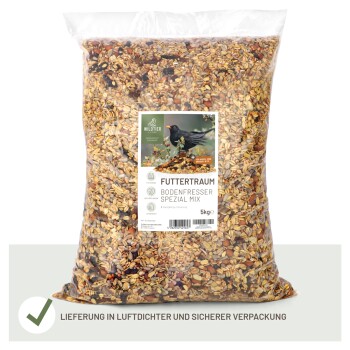 Gerade Bodenfresser profitieren von einer speziell auf ihre Bedürfnisse abgestimmten Futterzusammensetzung. Futtertraum Bodenfresser Spezial Mix unterstützt eine ausgewogene Energie- und Nährstoffversorgung und eignet sich ideal für die tägliche Fütterung im Garten, auf der Terrasse oder dem Balkon. Die Mischung kann einfach auf geschützten Bodenflächen, in Futterschalen oder speziellen Bodenfutterstellen ausgebracht werden. Dank der naturbelassenen und artgerechten Rezeptur ist das Futter bestens verträglich und für die ganzjährige Wildvogelfütterung geeignet.