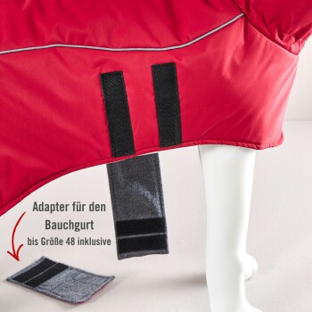Bei den Größen 24 bis 48 ist ein Adapter für den Bauchgurt inklusive. Wenn dein Hund etwas mehr Umfang benötigt, lässt sich die Jacke mit dem Verlängerungsstück ganz einfach anpassen. Der Adapter wird per Klettverschluss sicher befestigt – für eine bequeme Passform ohne Einschränkungen.