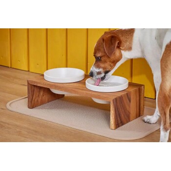 - NACHHALTIGES HOLZ & KERAMIKNÄPFE – Holzgestell aus nachwachsendem Plantagenanbau, herausnehmbare Näpfe aus 100 % Keramik.