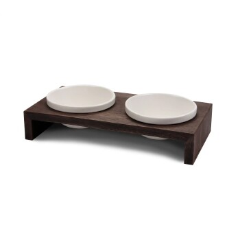 - NACHHALTIGES HOLZ & KERAMIKNÄPFE – Holzgestell aus nachwachsendem Plantagenanbau, herausnehmbare Näpfe aus 100 % Keramik.