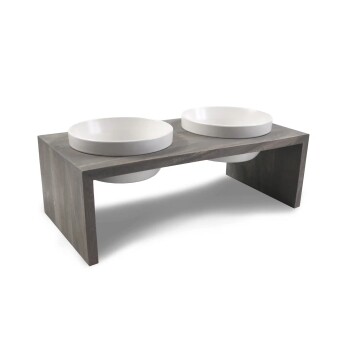 - NACHHALTIGES HOLZ & KERAMIKNÄPFE – Holzgestell aus nachwachsendem Plantagenanbau, herausnehmbare Näpfe aus 100 % Keramik.