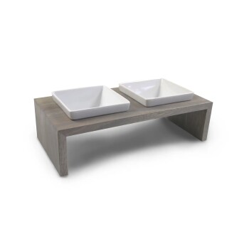 - ERGONOMISCHE FRESSPOSITION AUS NACHHALTIGEM HOLZ – Erhöhter Napf für eine komfortable, gelenkschonende Haltung beim Fressen.