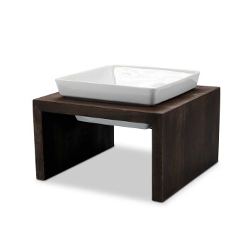 - STABIL & PFLEGELEICHT – Rutschfester Stand dank Silikonpunkten, Keramiknapf spülmaschinengeeignet, Holz leicht mit feuchtem Tuch zu reinigen.