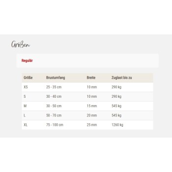 • Auch spezielle Größen für die breite Brust von Mops, Bulli & Co. und die extra kleinen Hunde erhältlich.