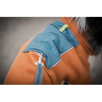 Das Anziehen ist dank des flexiblen, vierseitig dehnbaren Bauchpanels einfacher denn je, was volle Bewegungsfreiheit und stressfreies An- und Ausziehen ermöglicht. Die Passform wurde entwickelt, um wichtige Muskelgruppen warm zu halten, ohne die Bewegung einzuschränken, und mehrere Einstellpunkte an Kragen, Hals und Rücken sorgen für eine maßgeschneiderte Passform für Hunde aller Formen und Größen. Verstellbare Beinbänder mit weicher Auskleidung helfen, das Kleidungsstück während der Aktivität sicher an seinem Platz zu halten.
